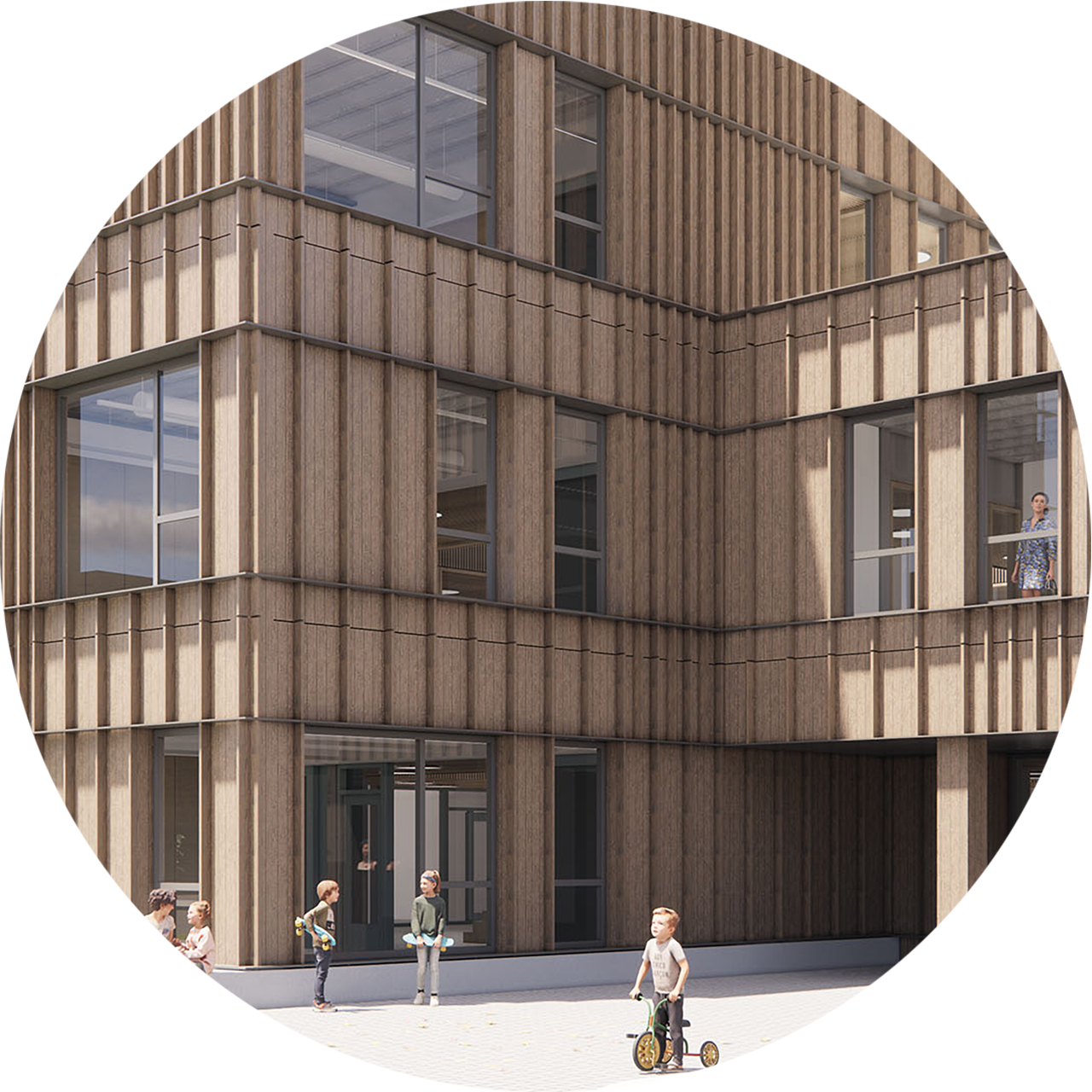 De school krijgt zijn eigen unieke uitstraling door de eindeloze mogelijkheden in de gevelafwerking. Tot slot sluiten we daarop aan met de inrichting van de buitenruimte die een verlengstuk van het interieur moet zijn.